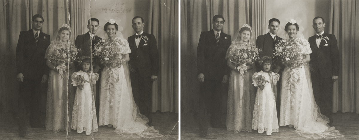 Digital Restoration Before and After done by Nanje Nowack at Orms Print Room & Framing
