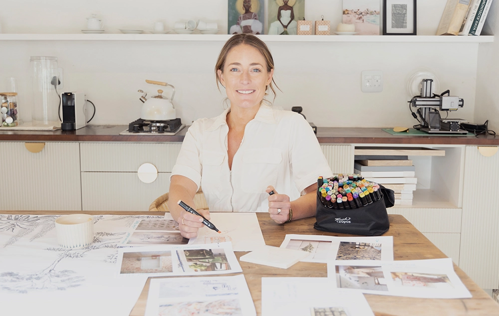 My name is Sarah, and I’m an architect. I love to scribble and draw the things I see. I grew up in Cape Town and still reside in the city. I have a small creative design studio where I focus on making things that help make people’s homes and spaces feel personal and beautiful.