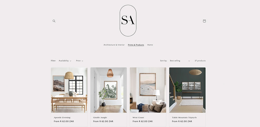 I approach my work architecturally. It starts with exploring Cape Town or being inspired by something or someplace. When I see something beautiful, I photograph it and take it to my studio, where I draw it up, scan it and then digitally overlay it. I also etch it and clean it up like you would stylise an architectural plan. I then figure out the best media to print it in. I then work out how to use it in a particular space. I’ll share that space on my Instagram and on my website and with people in case they’d like to do the same.